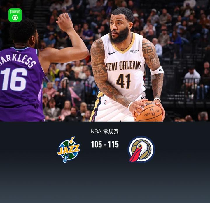 鹈鹕115-105双杀爵士,萨迪克-贝24分,科利尔21+7