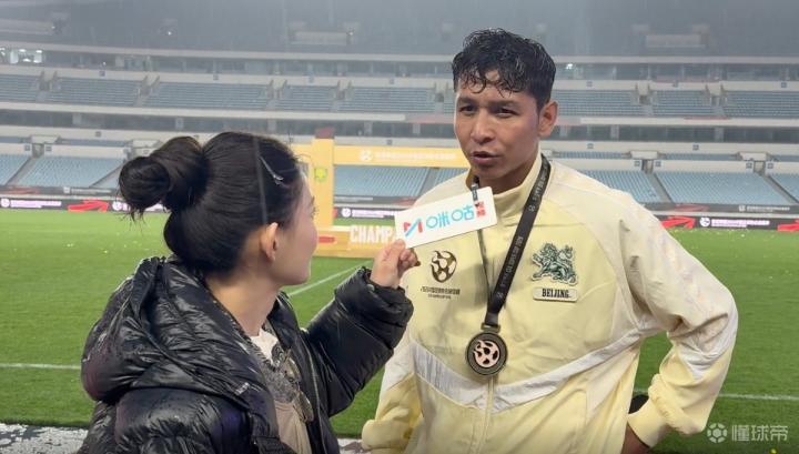 3月1日,在北京国安夺得2026超级杯的冠军后,国安新援海米提在场地上接受了采访。