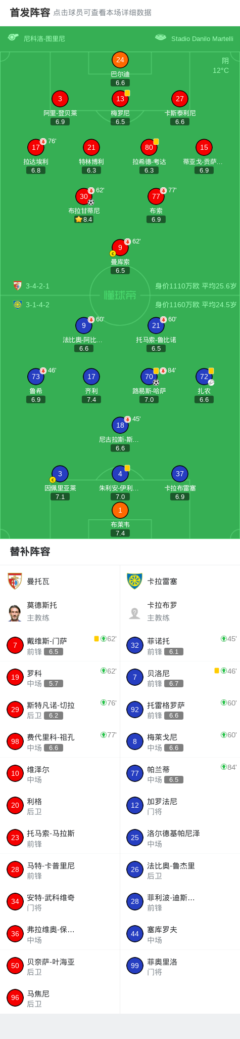 曼托瓦1-1卡拉雷塞,布拉甘蒂尼打破僵局,路易斯-哈萨扳平比分