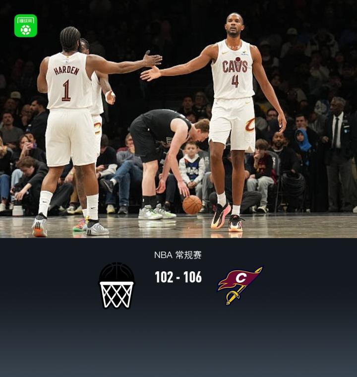 骑士106-102险胜篮网,哈登22+9+8,小波特26分