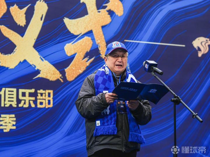 出征仪式上,俱乐部董事长谷际庆作动员讲话。他首先向长期以来一直信任支持申花俱乐部的各级领导、赞助商、合作伙伴、媒体、球迷朋友们致以衷心的感谢。谷际庆表示,社会赋予申花的托付与责任,申花之于足球的价值与承诺,都远超于一场比赛的胜利。新赛季就在眼前,今年我们将背负着前所未有的压力起步,只有每天脚踏实地努力工作,站稳脚跟,才有资格有机会去展望未来。久久为功,事在人为,新赛季我们无惧风雨,负重前行,申城之花依旧会绽放,我们的梦想一定会实现!