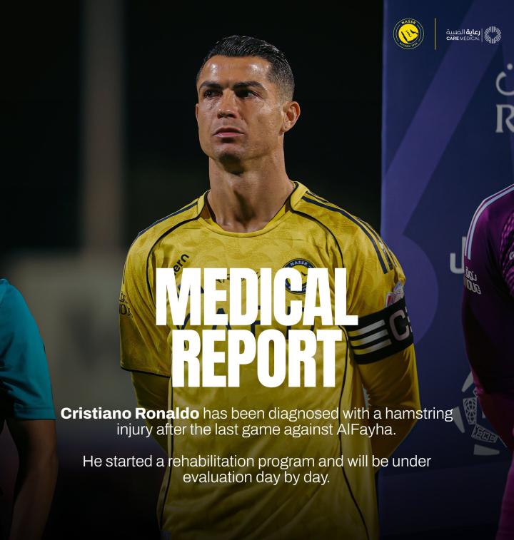 利雅得胜利官方:C罗被诊断出腿筋受伤,已开始康复计划JayStones @懂球帝03-04 01:33北京时间3月4日凌晨,利雅得胜利官方发布公告,公布了C罗的伤情信息。利雅得胜利官方公告:C罗在上一场对阵费哈的比赛后被诊断出腿筋受伤,他已经开始了康复计划,并将每日接受评估。(公告完)41岁的C罗目前身价1200万欧元,本赛季到目前为止,他已经在各项赛事中代表利雅得胜利出场26次且全部首发,打进22球并且送出了4记助攻。展开更多