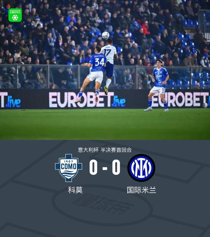 北京时间3月4日意大利杯 半决赛首回合,科莫对阵国际米兰。上半场尼科-帕斯、沃伊沃达造险,下半场达米安中柱,巴列失良机。最终比分科莫 0-0 国际米兰。