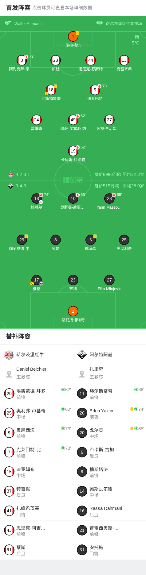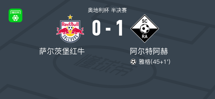 阿尔特阿赫1-0萨尔茨堡红牛,雅格制胜战报bot @懂球帝03-05 02:56北京时间3月5日奥地利杯 半决赛,萨尔茨堡红牛对阵阿尔特阿赫。阿尔特阿赫雅格破门。最终比分萨尔茨堡红牛 0-1 阿尔特阿赫。点击查看本场比赛详细数据>>精彩瞬间上半场补时第1分钟,阿尔特阿赫球员格赖尔助攻雅格打入一球。 球队阵容 技术统计 展开更多