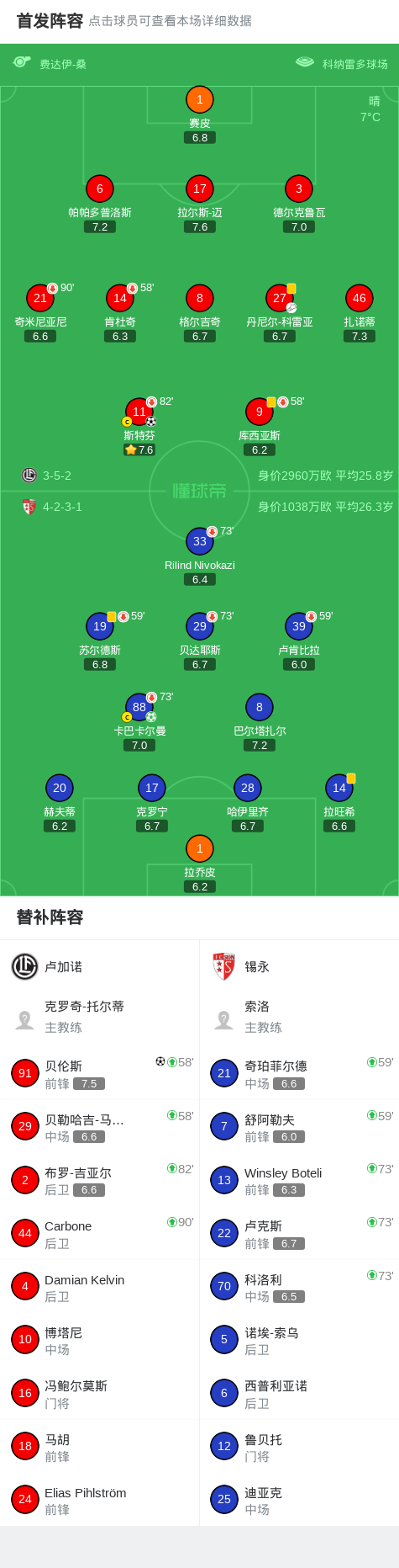 北京时间3月5日瑞士足球超级联赛 联赛 第28轮,卢加诺主场对阵锡永。卢加诺斯特芬破门,贝伦斯破门。锡永卡巴卡尔曼破门。最终比分卢加诺 2-1 锡永。