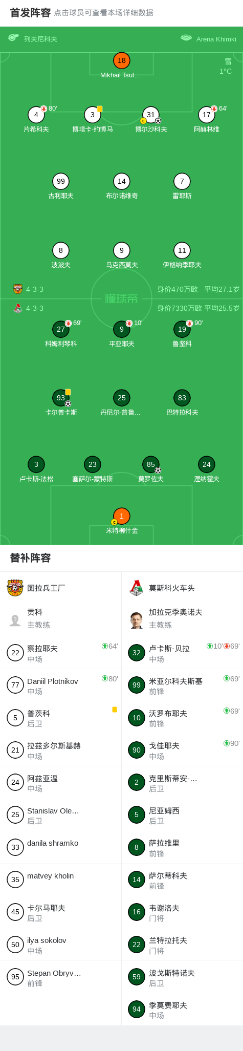 莫斯科火车头2-1图拉兵工厂,卡尔普卡斯破门,莫罗佐夫建功
