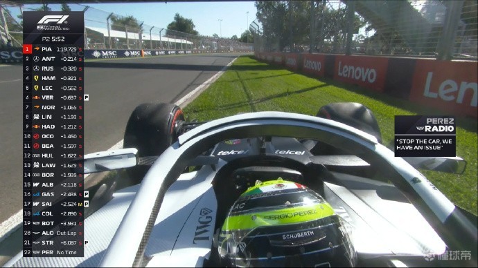 佩雷兹的赛车传感器出现问题,返回维修区进行修理。