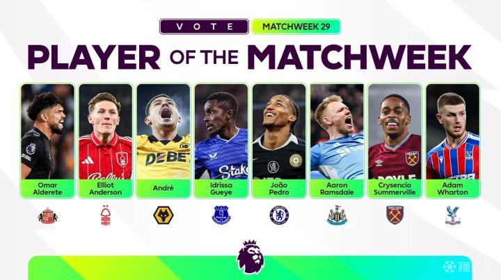 英超第29轮最佳球员候选:若昂-佩德罗、埃利奥特-安德森在列