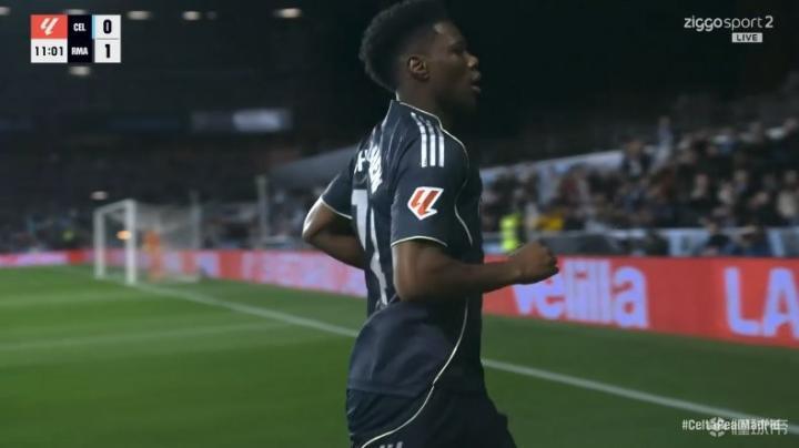 西甲第27轮,皇家马德里客场对阵塞尔塔,上半场楚阿梅尼破门为皇马取得领先,这是楚阿梅尼自2024年4月以来首次在西甲赛场取得进球。