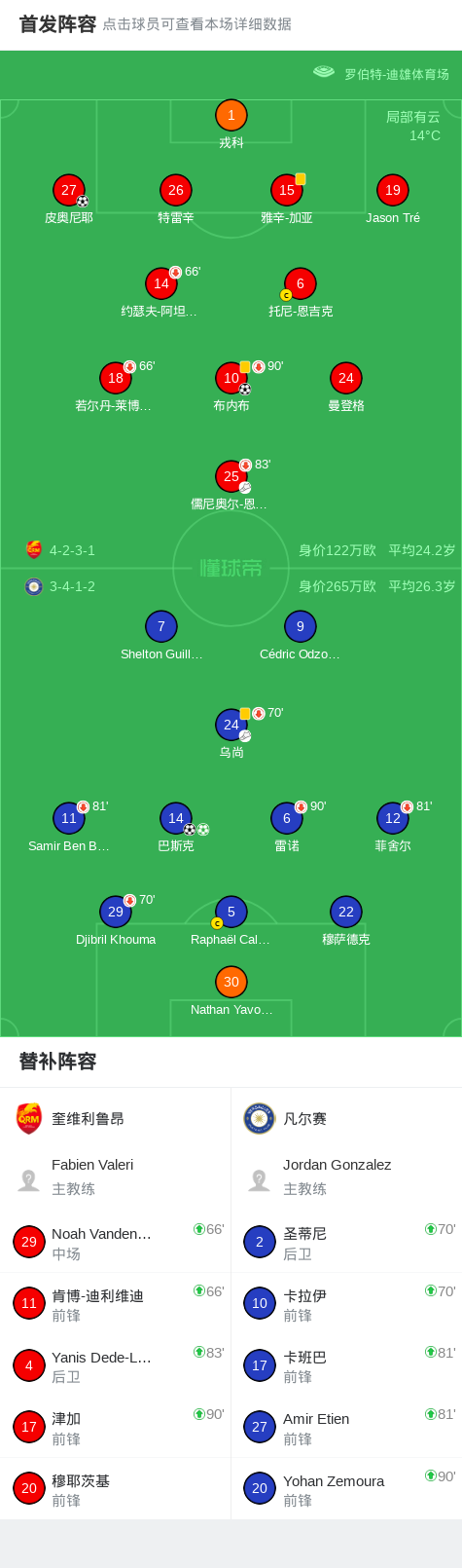 第69分钟,奎维利鲁昂球员皮奥尼耶打入一球。