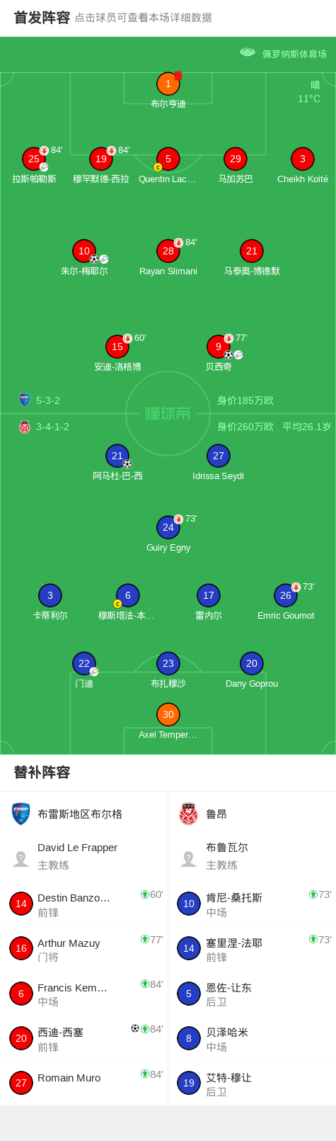 下半场补时第3分钟,布雷斯地区布尔格球员朱尔-梅耶尔助攻西迪-西塞打入一球。