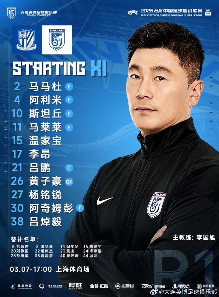 英博·2026 | 大连英博海发队客战上海申花队首发名单