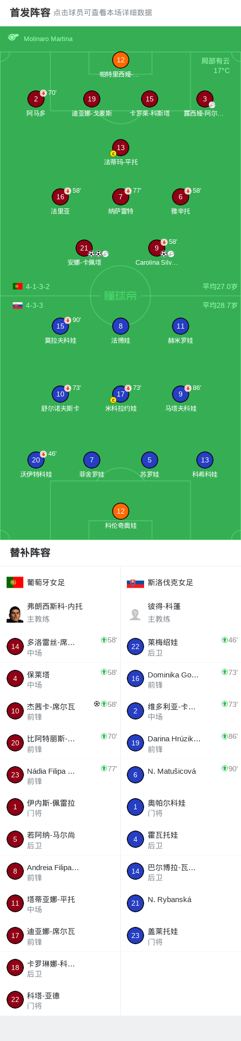 葡萄牙女足4-0大胜斯洛伐克女足,安娜-卡佩塔双响,杰茜卡-席尔瓦破门