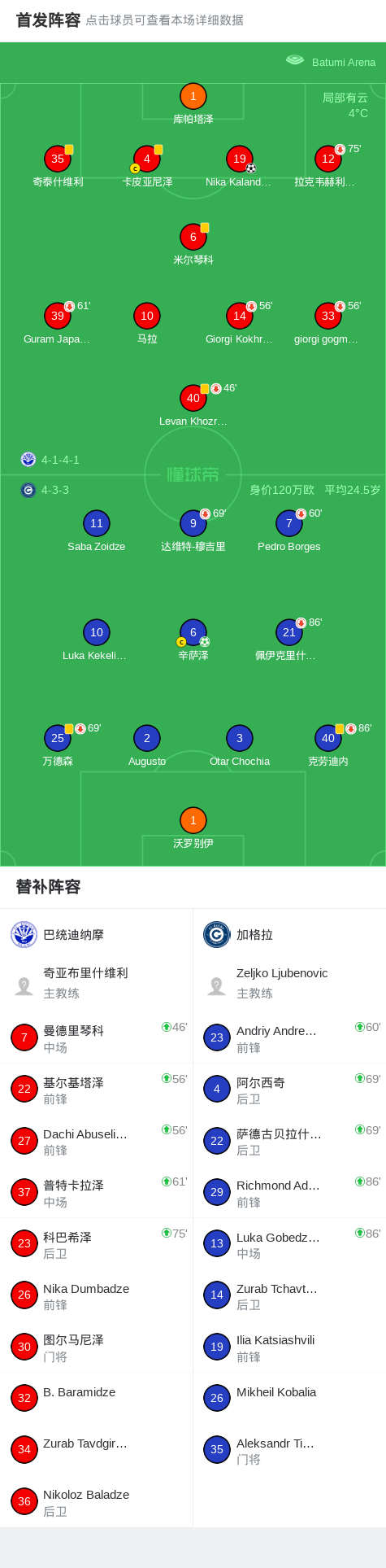 第86分钟,巴统迪纳摩球员Nika Kalandarishvili打入一球。