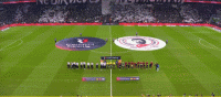 第1分钟,双方球员步入赛场,比赛即将打响