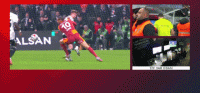 第61分钟,萨内踩踏犯规,裁判观看VAR后将其红牌罚下场