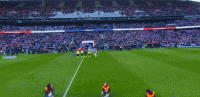 双方球员步入球场,大战即将打响