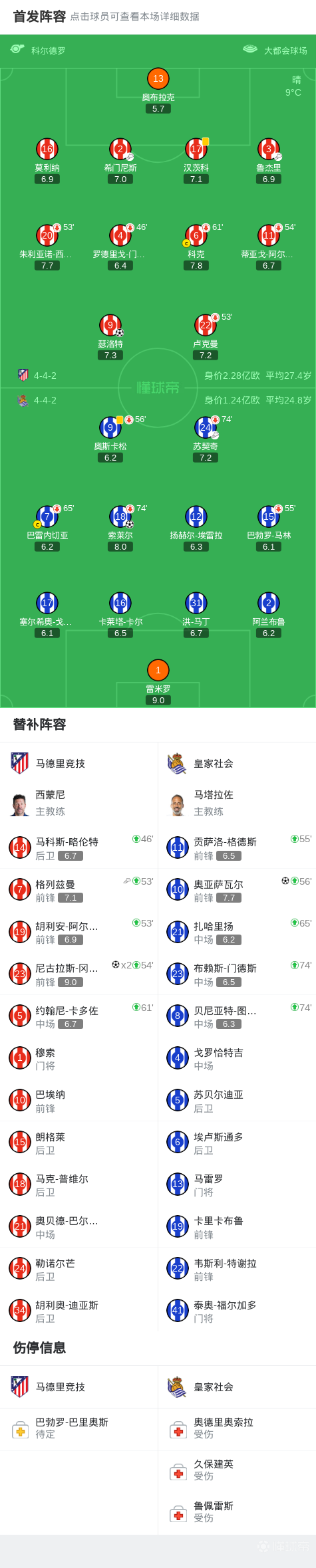 马竞3-2皇家社会,冈萨雷斯替补双响,瑟洛特、奥亚萨瓦尔破门
