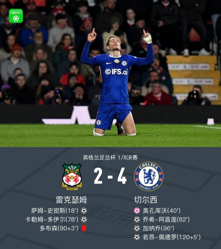 切尔西4-2雷克瑟姆晋级下一轮,加纳乔造乌龙+造红+进球