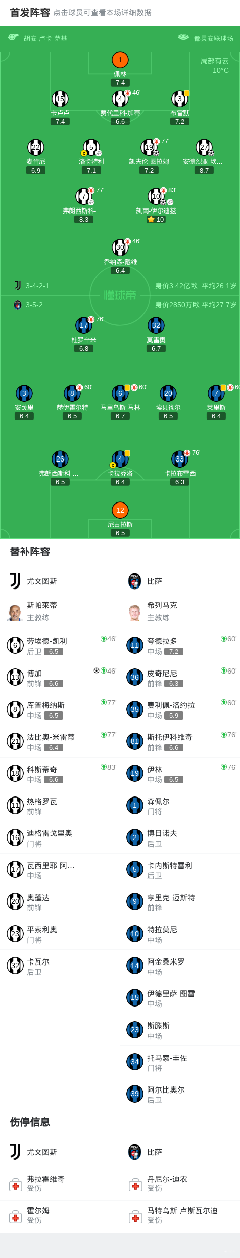 第54分钟,伊尔迪兹传中,坎比亚索头槌破门,尤文1-0