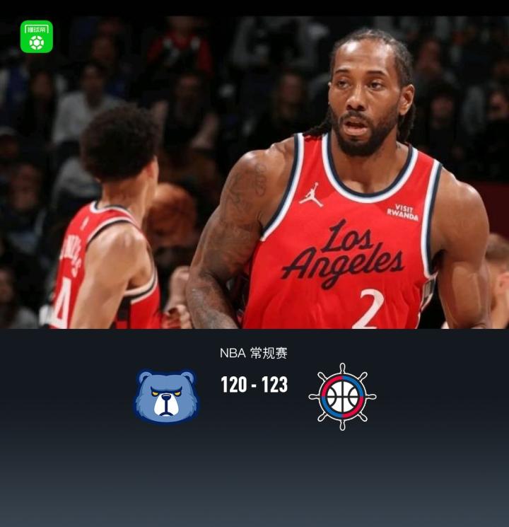 快船123-120逆转险胜灰熊,伦纳德28分,加兰21+6,杰罗姆23+7