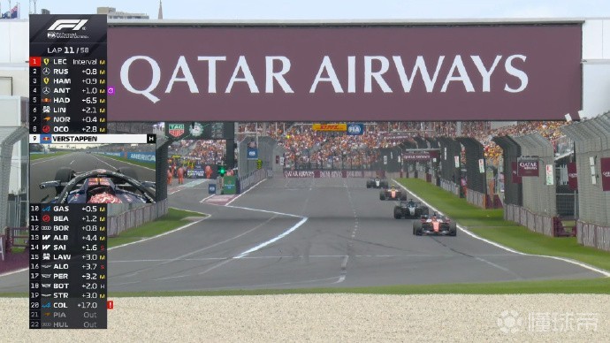 比赛进入最后十圈,维斯塔潘和诺里斯依然在激烈地争夺第五