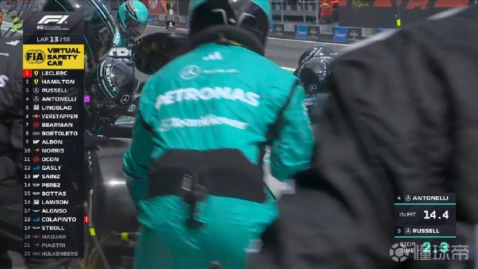 第二次虚拟安全车结束,除了法拉利外的所有赛车都已完成进站