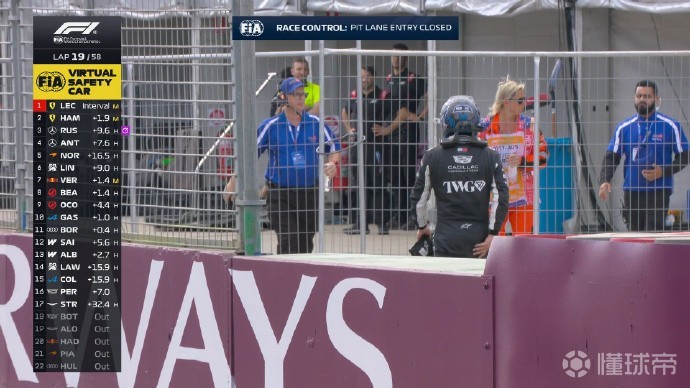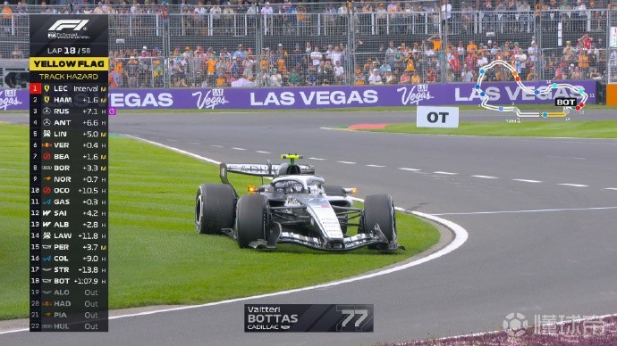 第18圈:博塔斯的赛车停在草坪上,他也退赛了,虚拟安全车再次出动