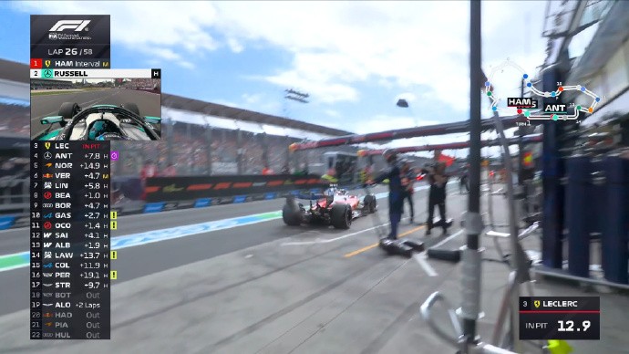 第26圈:梅奔持续追近,勒克莱尔率先进站