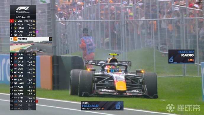 第11圈:哈贾尔引擎爆缸停在路边,虚拟安全车出动,他也将退出比赛