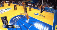 第二个登场姜贺用时56.8秒,一个三分不中罚3秒,最终成绩59.8秒。
