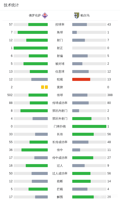 佛罗伦萨0-0帕尔马,比赛沉闷,双方共1次射正