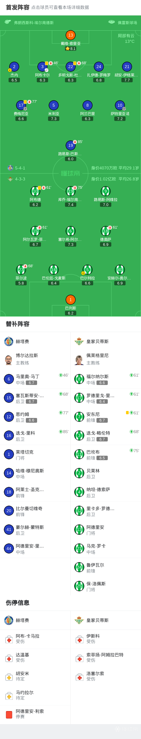 第28分钟,杜阿尔特头球被扑出,费梅尼亚补射破门,赫塔费1-0贝蒂斯