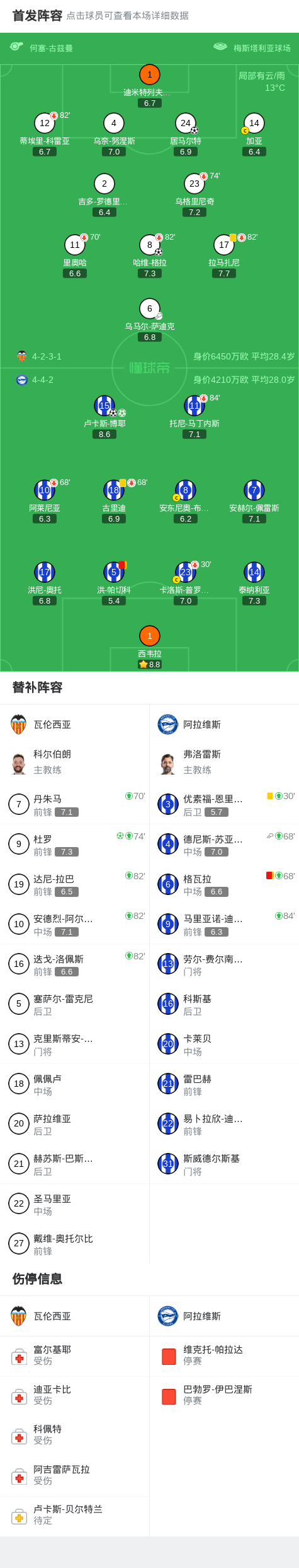 北京时间3月9日西班牙足球甲级联赛 联赛 第27轮,瓦伦西亚主场对阵阿拉维斯。瓦伦西亚哈维-格拉破门,居马尔特破门,杜罗破门。阿拉维斯卢卡斯-博耶梅开二度。最终比分瓦伦西亚 3-2 阿拉维斯。