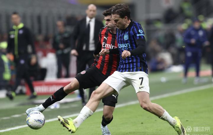 可能是赛前国米领先10分的关系,这场比赛有个观感,国米还是以稳字当头,速率和对抗都比较差,很多球都是停、看、带,而反观米兰这边就感觉上刺刀,不管是逼抢的合围,还是反击一脚触球都比较快。
