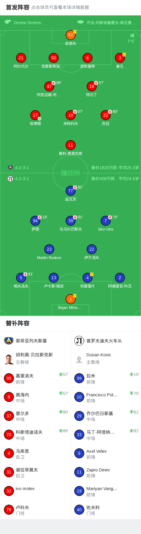 索菲亚列夫斯基1-0普罗夫迪夫火车头,埃弗顿绝杀战报bot @懂球帝03-10 01:57北京时间3月10日保加利亚甲级联赛 联赛 第25轮,索菲亚列夫斯基主场对阵普罗夫迪夫火车头。索菲亚列夫斯基埃弗顿破门。最终比分索菲亚列夫斯基 1-0 普罗夫迪夫火车头。点击查看本场比赛详细数据>>点击查看保甲完整积分榜>>精彩瞬间第89分钟,索菲亚列夫斯基球员埃弗顿罚入点球。 球队阵容 技术统计 展开更多