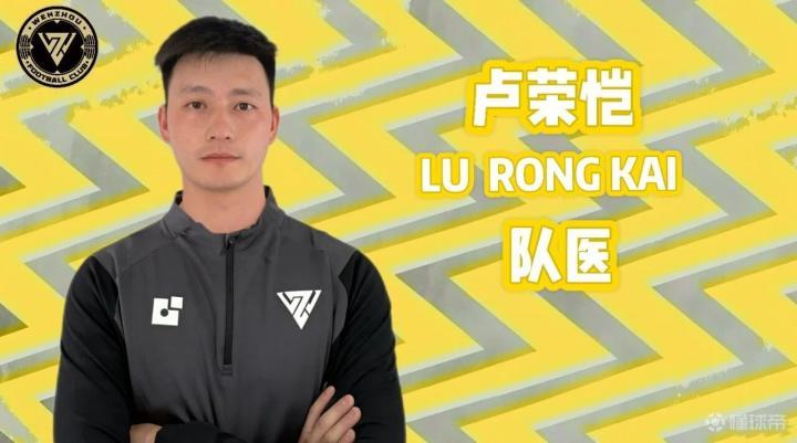 卢荣恺,1992年出生,毕业于武汉体育学院运动康复专业,2015年在河北精英足球俱乐部担任一线队队医,2016-2019年就职于天津权健足球俱乐部(天津天海足球俱乐部)担任一线队队医,2020-2023年在深圳佳兆业足球俱乐部担任一线队队医。