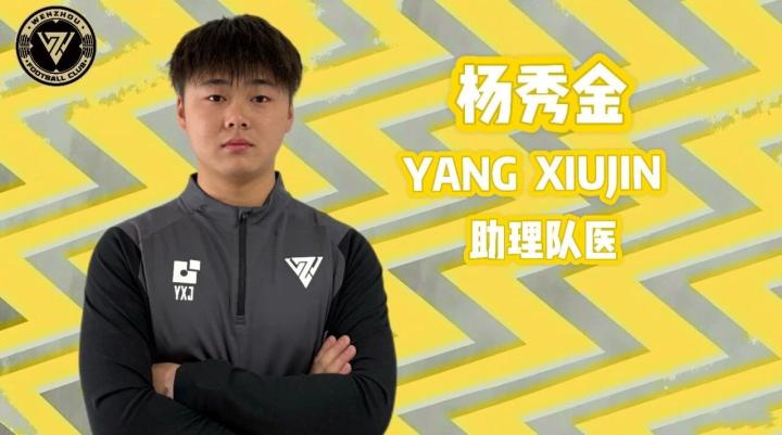 杨秀金,2003年出生,2024年广西平果哈嘹助理队医,2025年全运会广西U18女足队医,2025年温州职业足球俱乐部助理队医、康复治疗师。