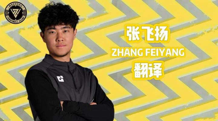张飞扬,2004年出生,2016年参加万达希望之星留洋选拔,获得全国第三名并赴西班牙留学,2016-2022年先后效力于马德里竞技、维戈塞尔塔、比利亚雷亚尔三家西甲俱乐部04梯队,2022年加盟西协乙球队皇家阿维莱斯代表其青年A队参加西班牙国家联赛,2023-2024赛季加盟中超浙江俱乐部,代表浙江队参加U21联赛。2025赛季加盟昆明城星,参加中乙联赛。语言功底扎实,西班牙语可熟练应用于战术会议、训练指导、赛事复盘等专业场景,无沟通壁垒;专业认知深厚,球员时期的跨级别赛事经历,使其深刻理解足球技战术、青训体系与职业俱乐部运作,翻译更精准贴合行业需求。