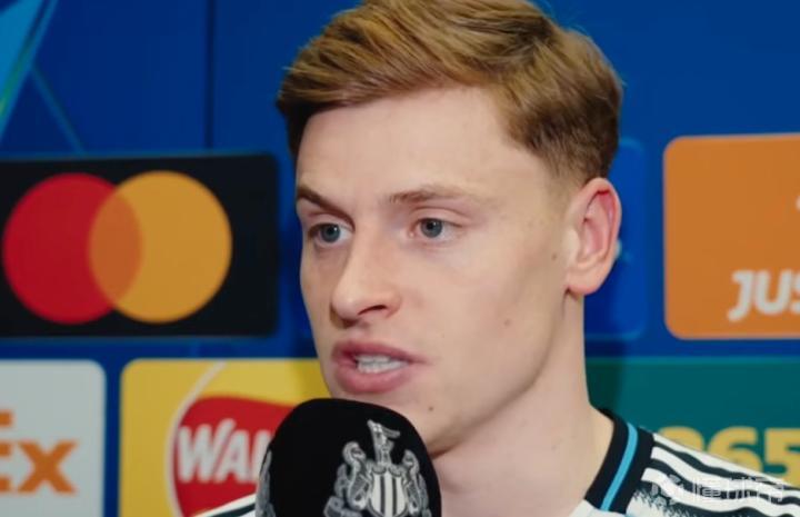 欧冠1/8决赛首回合,纽卡主场1-1战平巴萨,纽卡前锋哈维-巴恩斯赛后接受了俱乐部媒体的采访。
