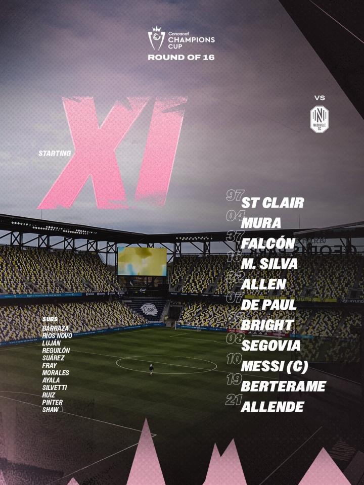 北京时间3月12日7点30分,美冠杯1/8决赛首回合纳什维尔对阵迈阿密国际,赛前公布首发名单。