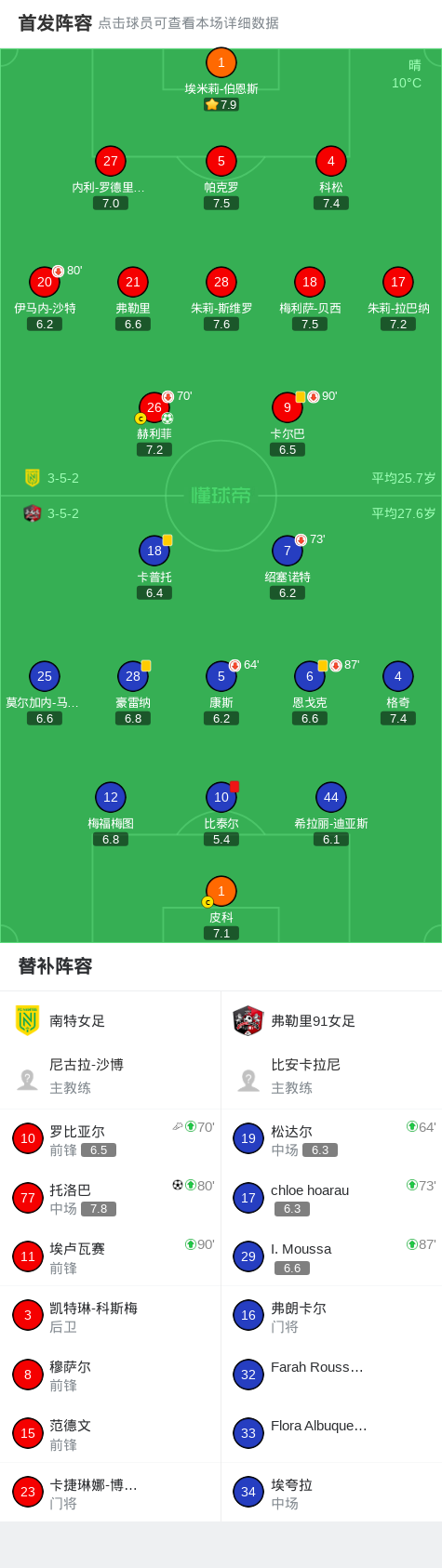 北京时间3月12日法国女子甲组联赛 联赛 第17轮,南特女足主场对阵弗勒里91女足。南特女足赫利菲破门,托洛巴破门。最终比分南特女足 2-0 弗勒里91女足。