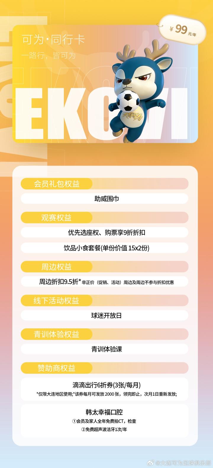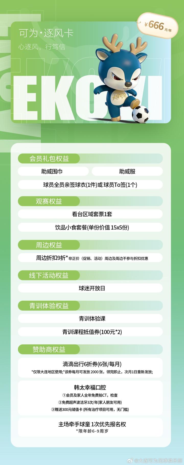 大连可为上线官方小程序并招募球迷会员,最高价1999/年ZeroTsu_02 @懂球帝03-12 17:06北京时间3月12日,据大连可为官方消息,大连可为官方小程序正式上线,俱乐部还公开招募可为大会员。大连可为共推出五档不同价位的会员,各档位卡种均搭配观赛、周边、线下活动、青训体验及赞助商专属权益,且权益随卡种价位提升逐步升级。初心卡:9.9元/年同行卡:99元/年逐风卡:666元/年笃信卡:999元/年荣耀卡:1999元/年展开更多