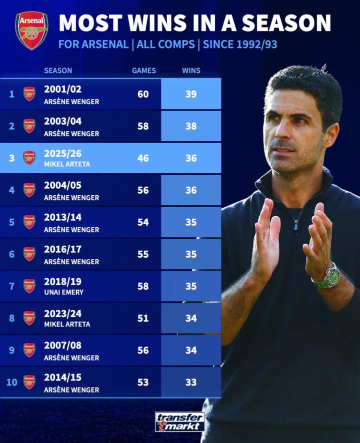 阿尔特塔领导阿森纳本赛季各项赛事已经拿下了36场...北伦敦小酒馆 @懂球帝03-12 17:11阿尔特塔领导阿森纳本赛季各项赛事已经拿下了36场胜利,距离教授温格创造的39场胜利仅有3场比赛的差距......展开更多