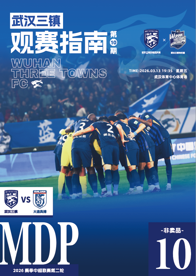 武汉三镇第10期赛刊将在本次主场比赛日发行,因赛刊发行数量有限,一人限领一本,先到先得。赛刊领取地点为武汉三镇足球俱乐部官方线下球迷商店(武汉体育中心体育场C104-C105看台外部区域之间)收银台和商店外侧“武汉三镇专栏组”点位,请大家领取时有序排队,保证现场秩序和领取效率,敬请配合。