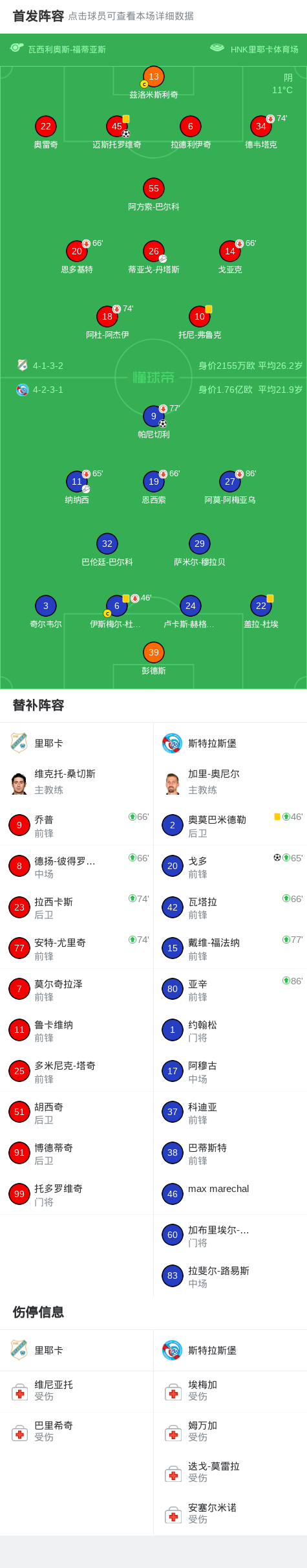 北京时间3月13日欧洲协会联赛 1/8决赛首回合,里耶卡对阵斯特拉斯堡。里耶卡迈斯托罗维奇破门。斯特拉斯堡帕尼切利破门,戈多破门。最终比分里耶卡 1-2 斯特拉斯堡。
