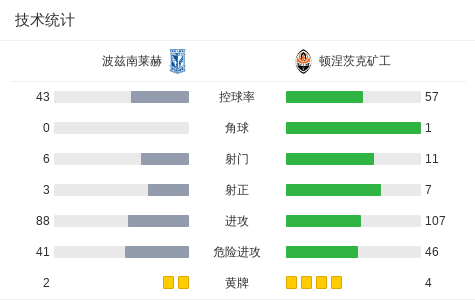 顿涅茨克矿工3-1波兹南莱赫,伊萨克、内弗顿破门