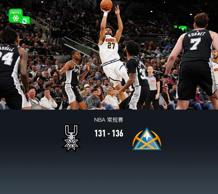 掘金136-131逆转马刺,约基奇31+20+12,穆雷39分,文班亚马缺阵