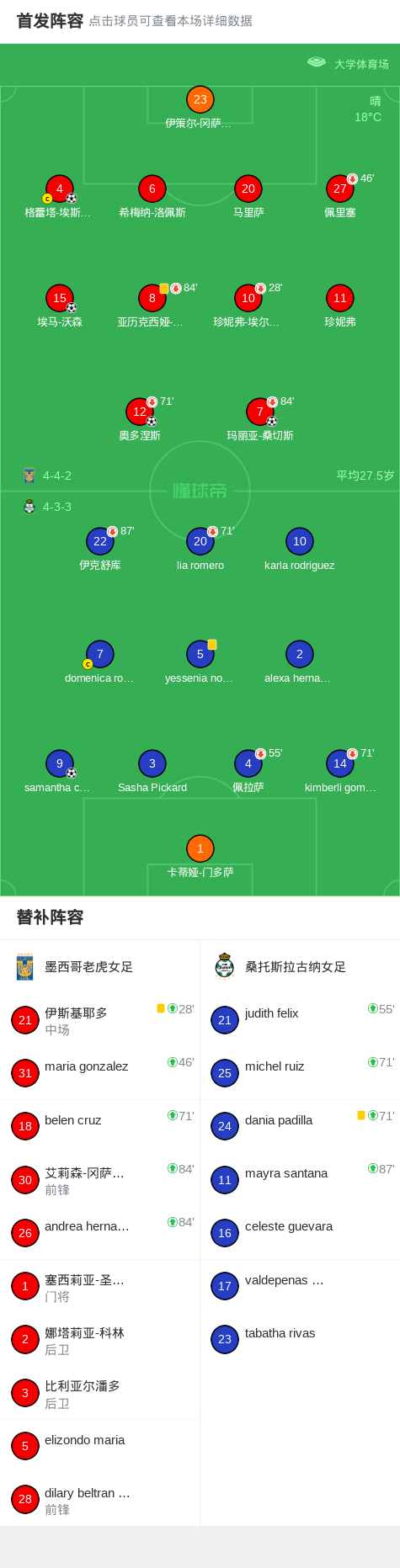 墨西哥老虎女足4-1大胜拉古纳女足,玛丽亚-桑切斯、奥多涅斯破门