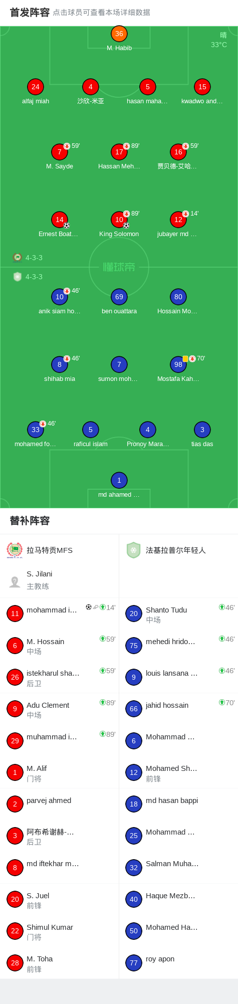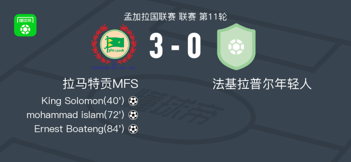 拉马特贡MFS3-0大胜法基拉普尔年轻人,Ernest Boateng、mohammad islam破门